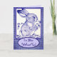 Cartão Coelho Branco Azul Nota de Saudades em Branco