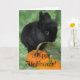 Este cartão caracteriza um coelho pequeno adorável que selecciona sua abóbora do Dia das Bruxas.