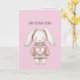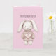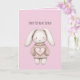 Cartão Coelho Fofo Rosa Doce Suéter de Coração Aniversári