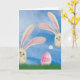 Cartão Coelhos de Páscoa com ovo rosa na grama