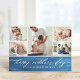 cartões com fotos de Dia de as mães impressos personalizados do barato. Este na moda minimalista design apresenta uma elegante escrita com letras num fundo azul pintado rústico. Personalize-o com um modelo de colagem de 5 fotos e sua mensagem de Dia de as mães Feliz personalizada. Use as ferramentas de design para personalizar fontes e cores de texto para criar um cartão com fotos único de Dia de as mães para sua esposa, mãe ou avó.