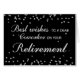 Felicite seu colega de trabalho por sua aposentadoria com este cartão elegante. Os pontos de brilho digital com aparência prateada são impressionantes no fundo preto.