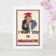 Colégio Enviar Mensagem do Tio Sam, um cartão de saudação de encorajamento com a qual quero que você Formando texto no cobrir. Uma ilustração vintage do Tio Sam com um boné de formatura vermelho. Quadro patriótico tricolor em vermelho, azul e branco. Mensagem de encorajamento dentro. Arte, imagem e direitos de autor © Shoaff Ballanger Studios.
