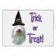 Serão truques ou ameaças neste Halloween? Nossa design de Natal tem sua raça favorita de cachorro, a Collie Manguejada, vestindo um chapéu de bruxa. Adicione um pouco de 'Hocus Pocus' a All Hallows este ano!
