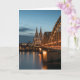 A cidade de Colônia, com a sua famosa catedral e a ponte de Hohenzollern no rio Reno, na Alemanha Ocidental, Europa. Fotografado durante a Hora Azul.