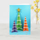 The card shows three handmade paper trees in bright colors like lime green, purple, and orange, each with unique designs 🎄. The biggest tree has a shiny golden star on top that sparkles, while the purple and orange trees have white garlands and silver studs for extra decoration. The background is a calm light blue, making the trees stand out. Small glittery baubles and sequins on the blue surface look like falling snow or ornaments 🎁. The trees are arranged differently for a cool, not symmetrical look, making the card interesting to look at. The colors and designs on the card feel new but also classic, making it perfect for the holiday season 🎅🏼. This card spreads holiday cheer and shows off how creativity can make something special out of simple things. Enjoy sending this card to make someone's day merry and bright!
