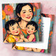 Cartão de água colorida do Dia das Mães sentimental abstrato colorido. Linda ilustração abstrata de uma mãe asiática, filho e filha.