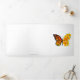 Borboleta de monarca laranja com asa decorada com papoila amarela e vibrante da Califórnia em fundo branco.