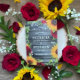 Crie seus próprios convites para casamento de girassol rústico em uma elegante modelo de três vezes DIY que é simples de personalizar com sua foto de noivado. A única e original obra de Raphaela Wilson retrata girassol e rosas vermelhas amarelos brilhantes com eucalipto, folhas verdes de flores silvestres e o hálito do bebê sobre um fundo texturizado de madeira de cinza. Luzes brancas lindas e frascos-pedras adicionam um brilho romântico a estes convites de casamento rústicos triplicados. Se você está em um orçamento e está procurando por convites personalizados multifuncionais que incluam cartões rsvp que seus convidados podem usar para responder, ou um código qr para que eles verifiquem seus detalhes de casamento (site, acomodações, programa, etc.), este modelo de país fácil pode ajustado maravilhosamente nos seus planos venha outono, primavera, verão ou inverno. Se você continuar modificando este design botânico boho, sinta-se livre para mudar a caligrafia clássica e a tipografia moderna para fontes que melhor se adequam ao seu estilo. Aproveite! Categoria: convites de casamento de girassol dobrados no outono com fotografia; conjuntos de modelo de convite para o casamento de girassol em cartão postal; e ideias de casamento de girassol e rosa vermelha em um orçamento. Tema de cor do casamento russo: ouro amarelo, âmbar brilhante, vermelho escuro, vermelho escuro, cinza escura, verde-sábio claro, preto e branco.