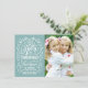 Modelo encaracolado festivo e folksy da foto dos cartões de natal do Natal do estilo da giz-arte em cartões lisos na moda. Tipografia branca do estilo lunático do quadro no fundo azul do inverno alegre com a mistura retro de estilos mão-indicados por letras, decorada com as bagas gelados da folha e do azevinho. Adicione sua foto de família favorita do feriado e personalize o texto. Maneira moderna de enviar cartões de natal felizes do inverno todos seus amigos e aos amados com o dom rústico elegante. Porte postal, convites da festa natalícia, e cartões de harmonização disponíveis em cima do pedido. PCF15