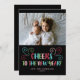 Um cartão com fotos tipográfico de Ano Novo divertido que permite usar uma foto horizontal em um layout de retrato. Isto é perfeito para fotos de irmãos e famílias. A parte inferior da carta apresenta a frase "aplausos para o novo ano!" em fontes modernas e multicoloridas, e seu sinal abaixo disso em rosa-bebê. O fundo está em preto sólido.
