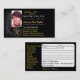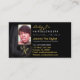 Adicione sua própria foto aqui para personalizar este cartão de visita de salão de cabelo que dobra como um cartão de compromisso. Mostra a imagem do cabelo, do pente de salão, da tesoura de salão (tesoura). As cores são pretas, brancas, acentuadas com texto dourado. Design as suas próprias cartas aqui.