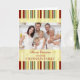 Cartão com fotos do Feliz Natal em listras à moda e modernas e no teste padrão vermelhos, verdes e amarelos do floco de neve, facilmente customizável com sua fotografia pessoal da família. Deseje seus amigos e poço da família esta época natalícia com este cartão do divertimento.