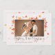 Mande aos seus amigos e família uma saudação de Feliz Dia de Graças personalizada com este cartão com fotos de Ação de Graças. Ele apresenta uma design adorável com cores de queda e folhas e uma saudação escrita à mão. Há um ponto para uma foto da família na frente, e dois pontos para fotos nas costas.