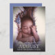 Um elegante cartão com fotos de bebê adormecido para enviar aos seus amigos e família para receber o seu recém-nascido. Adorável com um nome dinâmico de tipografia de rosto aberto. Substitua esta foto pela foto do seu próprio recém-nascido na orientação vertical do retrato para obter melhores resultados. A parte de trás do convite é uma cinza de ardósia profunda azul.