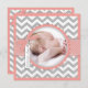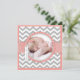 Cinza de impressão chic e chevron branco com sotaques cor-de-rosa coral e arco de aparência 3D e cartão com fotos de anúncio de nascimento de menina de fita.
