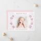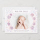 Lançamento de Nascimento de Bebê Petal design de Foto Personalizada com quadro curvo de rico desenhado à mão, tons pastéis de rosa pincelado e flores e pétalas de cor d'água púrpura. Uma maneira adorável de mostrar o mais novo membro da família! Basta substituir a imagem por sua própria fotografia e alterar os campos de texto. Cartões com fotos bonitos e divertidos. Verifique meu compro para ver toda a coleção!