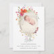O retrato de nascimento de um bebê de flor de pelúcia e de pelúcia formou um cartão de anúncio fotográfico com tipografia elegante, personalizável para suas especificidades.