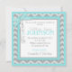 Cinza de chic e impressão de chevron branco com acentos aqua e arco de aparência 3D e cartão com fotos de anúncio de nascimento de fita.