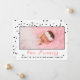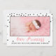 Cartão de Anúncio de Foto de Nascimento Moderno, Rosa e Preto | Estrelas de Confetti Pretas e Script Rosa. Designs Elke Clarke ©. Mais estilos disponíveis em nosso compro. Design elegante e versátil pode personalizar para um anúncio de nascimento de uma menina princesa. As estrelas pretas confetam o padrão nas costas.