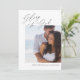 Este cartão de Natal elegante e moderno apresenta uma caligrafia adorável e uma fotografia grande. A frase "Glória a Deus" é escrita em bonito escrita caligráfica sobre fundo branco. O script sobrepõe levemente uma foto grande que é colocada assimetricamente em um lado da placa. Abaixo da foto, adicione seus nomes e mensagem de feriado. A parte traseira da placa apresenta um padrão festivo de folhagem branco e cinza. A cinza neutra pode ser alterada para qualquer cor que você quiser.