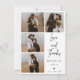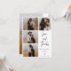 Cartão com fotos de Casamento de Script Moderno Minimalista Este cartão com fotos de casamento minimalista apresenta quatro fotos na frente e uma grande foto nas costas, bem como uma mensagem de caligrafia moderna e um pequeno coração. Excelente para um casal procurando por um simples cartões de agradecimentos de fotos de casamento moderno.