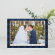 Cartão com fotos de Casamento de Xadrez Azul Feliz