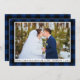 Feliz Natal Xadrez Azul Cartão com fotos de Casamento de Tartan