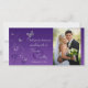Este cartões de fotos de casamento de cinzas roxas e prateadas tem borboletas e flores nele, juntamente com um obrigado personalizado que você envia aos seus convidados de casamento. Corresponde ao convite de casamento mostrado abaixo. Se você precisar de assistência ou quiser que este design seja usado em outra combinação de cores, envie um email para niteowlstudio@gmail.com.