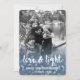 Mande suas saudações a Chanucá em estilo com essas belas cartas. O pano de fundo azul do livro desaparece na foto da sua família, com uma doce mensagem de "Amor e Luz" em tipografia de pinceladas brancas. Personalize com seu nome de família e o ano, e personalize a saudação também, se quiser. Fotografia © Storytree Studios, Stanford, CA