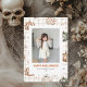 Mande saudações de Halloween com um toque de charme! Este cartão com fotos bonito e assustador apresenta um adorável padrão de Halloween com fantasmas, estrelas e festivo flair. Perfeito para famílias, amigos ou qualquer pessoa que ame designs de diversão e na moda. Adicione sua própria foto para uma surpresa personalizada do Dia das Bruxas!