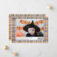 Cartão com fotos de Halloween de Xadrez Roxo e Gingham Laranja