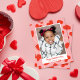Este cartão com fotos moderno e divertido apresenta um padrão de fundo de pulgões vermelhos do coração, tipografia retrô e uma foto vertical. A parte traseira da placa tem o mesmo plano de fundo, que pode ser removido se desejar. Você também pode adicionar outra foto ao verso e/ou texto adicional ao verso.