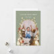 Um cartão festivo de Páscoa verde-colorido, com fotografia personalizada e saudação ao lado do trabalho de arte de safra das flores de primavera e de dois coelhos coelhos tocando instrumentos musicais. Personalize ainda mais esta placa com uma foto adicional na parte traseira, bem como uma saudação mais longa.