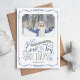 cartões com fotos de feriado personalizados com barato simples para personalização. Este design alegre apresenta elementos florais brancos e tipografia divertida, escrita à mão, em azul de inverno e cores de cinza. O texto diz: "Que seu coração esteja cheio de amor e alegria das férias". Personalize com sua foto, nomes e o ano. O verso tem um fundo de bolinhas bonito ou usa o espaço para adicionar fotos e texto adicional, se necessário. Use as ferramentas de design para editar as fontes de texto e as cores ou adicionar mais fotos para criar uma única de um tipo de Cartões de foto de Natal.