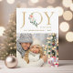 Mande alegria de férias para sua família e amigos com este elegante e moderno cartão com fotos de férias de ouro floral da JOY com padrão de bolinhas douradas no verso.