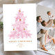 Árvore de Natal rosa em camadas com amoras de ouro. Cartão com fotos de Feriado de Árvore de Natal Rosa em Camadas.