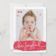 Um cartão de feriado moderno, com uma pincelada vermelha festiva e um roteiro alegre. O backer inclui um padrão de neve com a opção de remover e trocar por uma mensagem personalizada ou fotos adicionais.