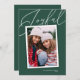 Este moderno, porém elegante cartão com fotos de feriado apresenta um belo fundo verde-escuro com "Joyful" em um roteiro de caligrafia branca e uma foto. Este design acomoda uma foto vertical do solteiro na parte frontal da placa. No verso está o mesmo plano de fundo verde, ao qual você pode adicionar outra foto e/ou texto adicional selecionando a opção "editar usando a ferramenta design".