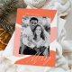 Design de férias moderno com abstrato em forma pintada em laranja e em branco com fundo creme. A palavra "Feliz" é exibida em um roteiro de caligrafia branco e elegante. Personalize o cartão de feriado de abstrato, adicionando seu sobrenome e uma foto favorita. A placa se reverte para um plano de fundo do pincel laranja.