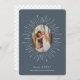 Compartilhe cartões de natal com esses Cartões de foto de Natal quentes e minimalistas com sua foto favorita vertical ou orientada a retratos, enquadrado por uma ilustração feita à mão sobre a explosão solar em branco em cinzas azuis de ardósia suave. "Sempre feliz" aparece por baixo em letras brancas em serif e itálico. Personalize com sua saudação e nomes personalizados abaixo. Um cartão de férias elegante com uma estética moderna e mínima que permite brilhar a sua foto favorita.