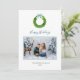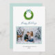 Celebre a alegria da estação com este cartão de saudação de Natal personalizado com uma fabulosa coroa aquática enfeitada com um belo arco azul. Este design elegante é a maneira perfeita de compartilhar desejos calorosos com entes queridos. Adicione sua foto de família para criar um cartão verdadeiramente único e sincero que será apreciado por anos.