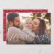 Este cartão com fotos de feriado apresenta uma combinação exclusiva de script e letras serif para a saudação sobre a foto da família de sangramento do cheio. Adicione mais fotos e uma mensagem de Natal personalizada às costas! Personalize-o para alterar as cores e fontes!