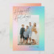 Este cartão com fotos de feriado moderno apresenta um plano de fundo pastel com as saudações "Feriados mais Felizes" e uma foto vertical solteiro. Este design acomoda uma foto vertical do solteiro na parte frontal da placa. No verso está o mesmo plano de fundo de gradação, ao qual você pode adicionar outra foto ou texto adicional selecionando a opção "personalizar mais".