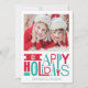 Este cartão de feriado com uma foto apresenta uma tipografia em negrito e vermelho. Ele pode ser facilmente personalizado com seu nome, saudações e fotos. Espaço adicional para saudações disponível na parte traseira do cartão.