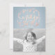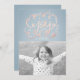 "Joy" num efeito brilhante e falso de folha de cobre contra um fundo azul-cinza de urze. Personalize esses cartões com fotos modernos e simples com sua própria foto, seu nome de família e o ano.