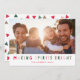 Espalhe o amor nesta temporada de festas com este na moda e cartão com fotos de festas coloridos que diz "Fazer Spirits Bright" e mostra sua própria foto. Há um padrão de triângulo correspondente no verso.