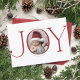 Este cartão com fotos de Natal único e recém-nascido mostra a foto do seu bebê no centro da palavra "alegria" - perfeita para compartilhar notícias do pacote do Primeiro Natal da alegria.
