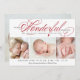 Este cartão com fotos de Natal dobra como um anúncio de natalidade e mostra quatro fotos do seu recém-nascido e a frase "Estes momentos maravilhosos são aqueles que nós vamos valorizar todas as nossas vidas".