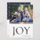 Combustos botânicos, ramos e bagas de inverno, enfeitados "JOY", em ouro festivo e verde esmeralda, cartão com fotos de férias chato.